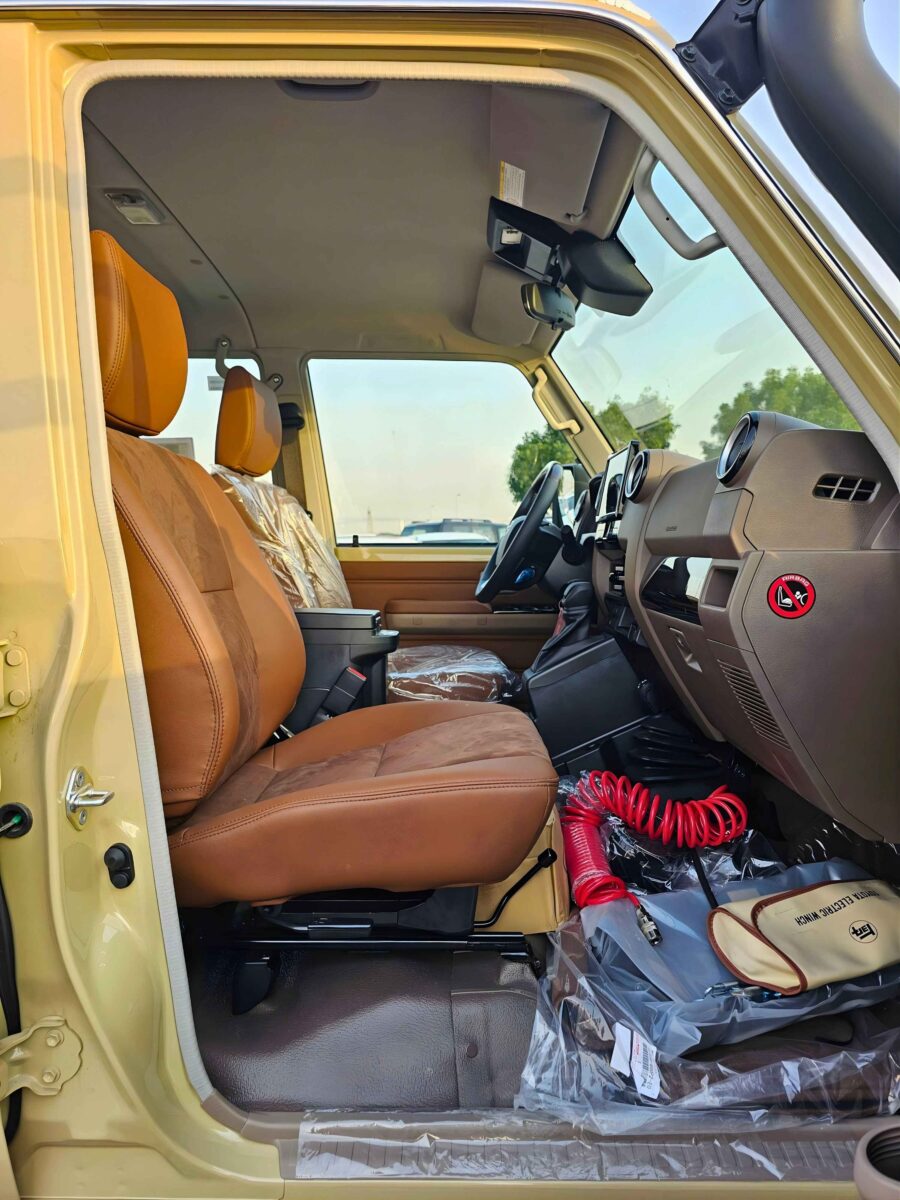 Inside, the cabin focuses on comfort and easy use. The layout is practical, the seating is supportive, and the features are chosen to make long hours behind the wheel more relaxing. Everything feels built to last, with a strong sense of quality that matches the Land Cruiser reputation. For personal buyers, it offers comfort and confidence. For commercial buyers, it offers durability and low stress ownership.