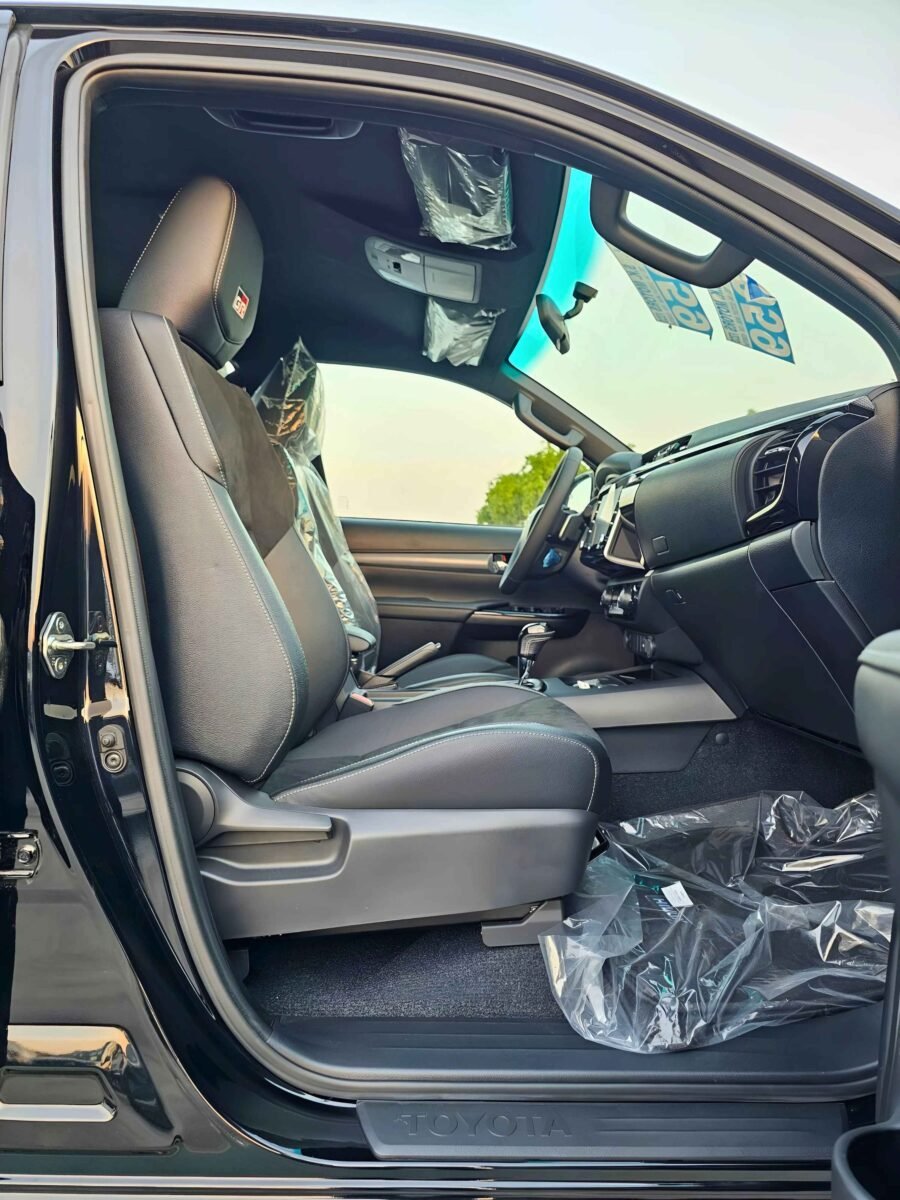 The Hilux GR Sport 2024 is engineered for off-road and urban driving with 4WD capability, eco & power drive modes, and advanced traction control. Its black interior and exterior exude elegance and toughness, while leather seats, front & rear air conditioning, and digital display ensure premium comfort.